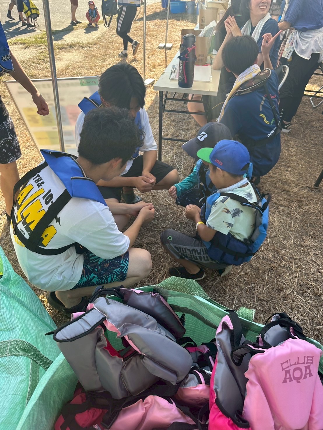 本活動では、ガサガサ調査において捕獲された魚をバケツで受け取る係を担当したほか、水質調査や生物観察の補助、ボート遊びのサポート、さらに子どもたちが安全に活動できるよう見守る役割を担いました。