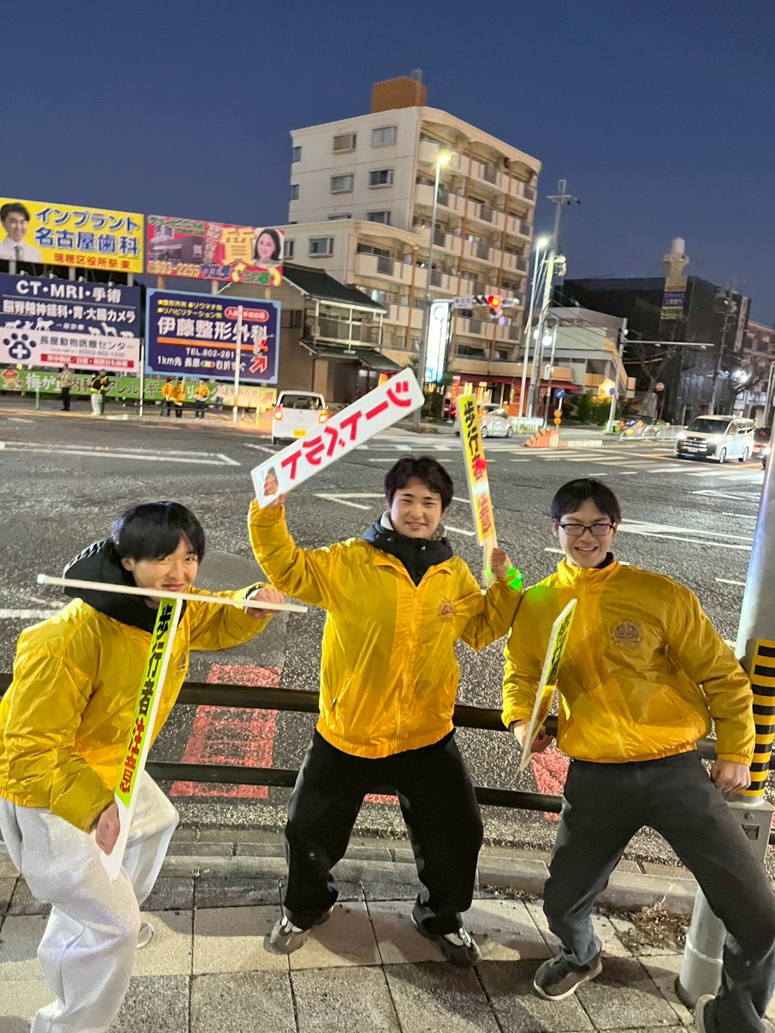 日没前の一番見守りが必要な時間帯に、総勢16名の名城大学の学生、地元の参加者の方々にお集まりいただき、交差点を行き交う子どもたちや住民の皆さまを見守ることができました。