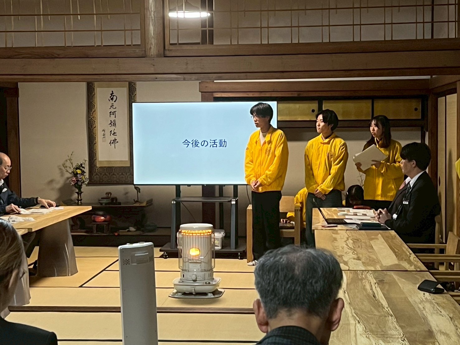 報告会後半では、令和8年度に向けた新規企画案のプレゼンテーションを実施し、南砺市長および市議会議員の皆様をはじめとする関係者の方々と意見交換を行いました。続く懇親会では、食事を囲みながら南砺市の将来について活発な意見交換が行われ、今後の活動の方向性をより明確にする貴重な機会となりました。