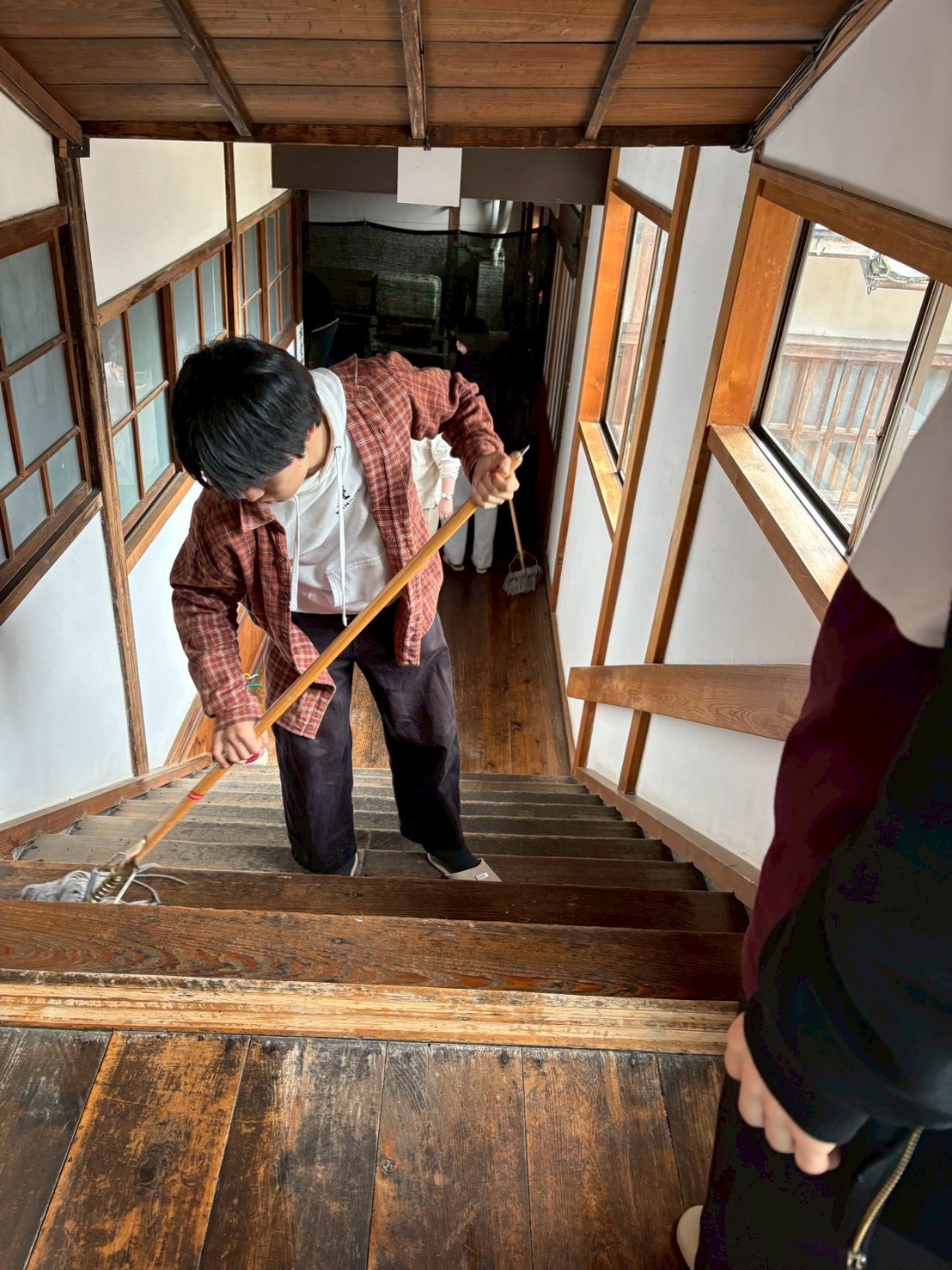さらに、翌日には日頃お世話になっている善徳寺にて清掃活動を実施しました。窓拭きや床のモップがけなどを行い、感謝の気持ちを込めて環境整備に取り組みました。